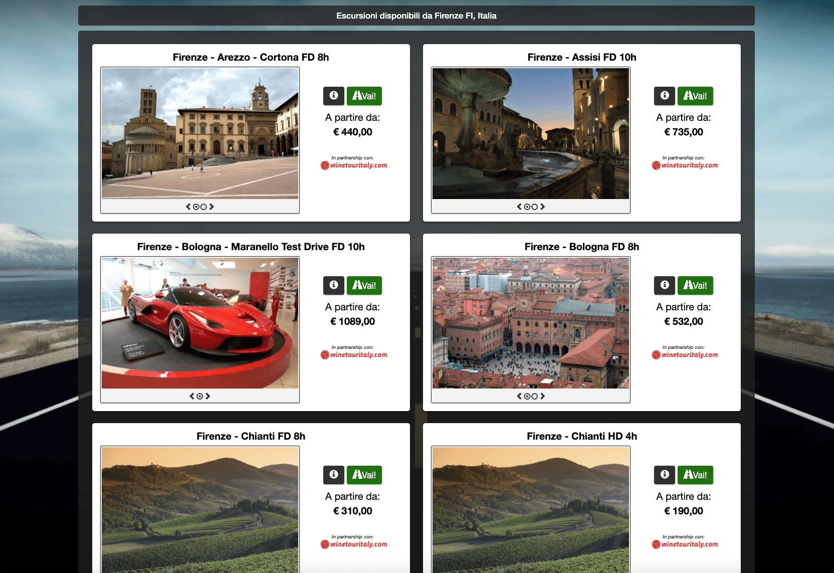 - Lista delle escursioni disponibili con partenza dal luogo selezionato.